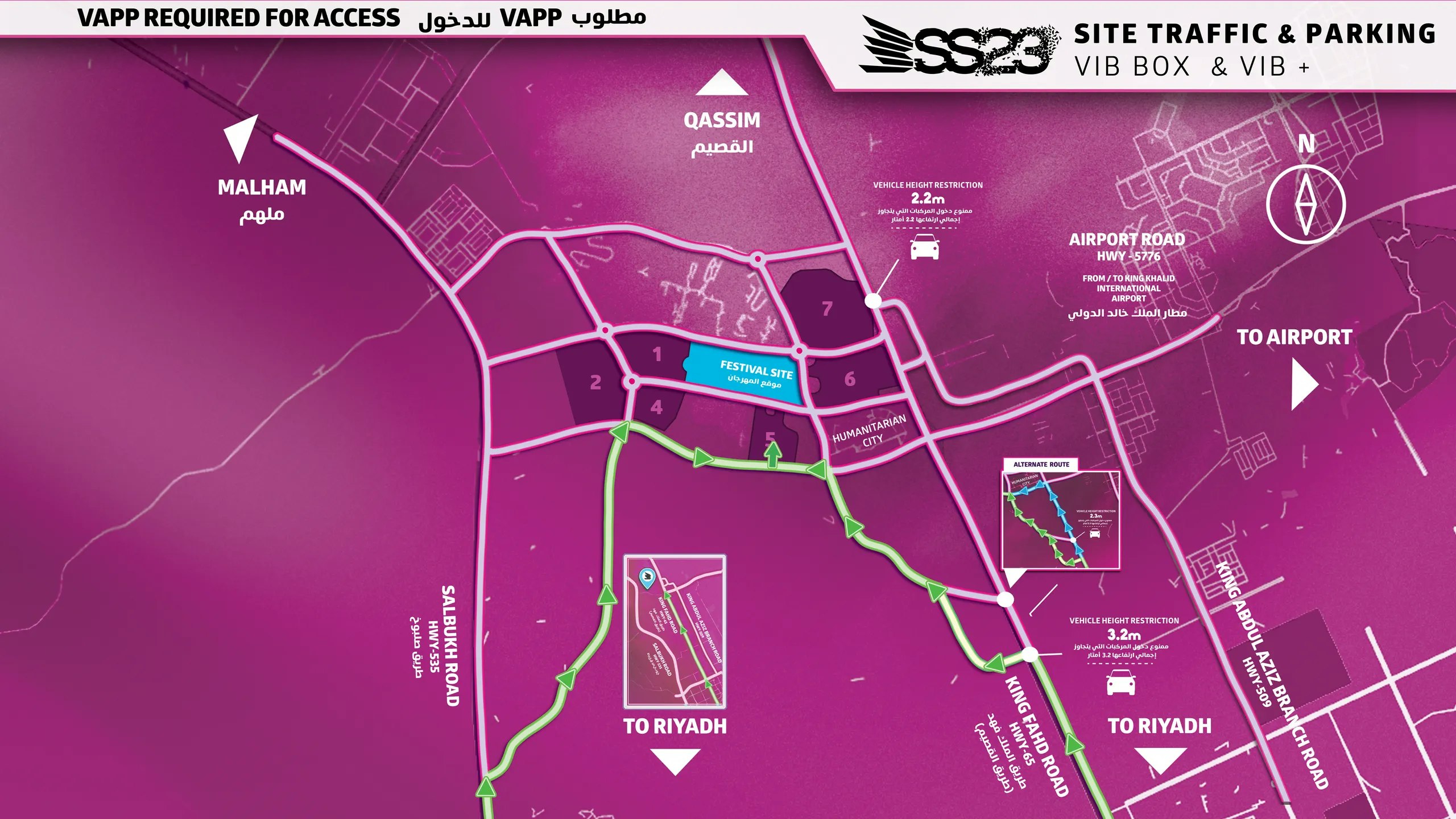 إذا تجاوزت سيارتك 3.2M في الارتفاع، فيرجى اتباع مسار VIP البديل.