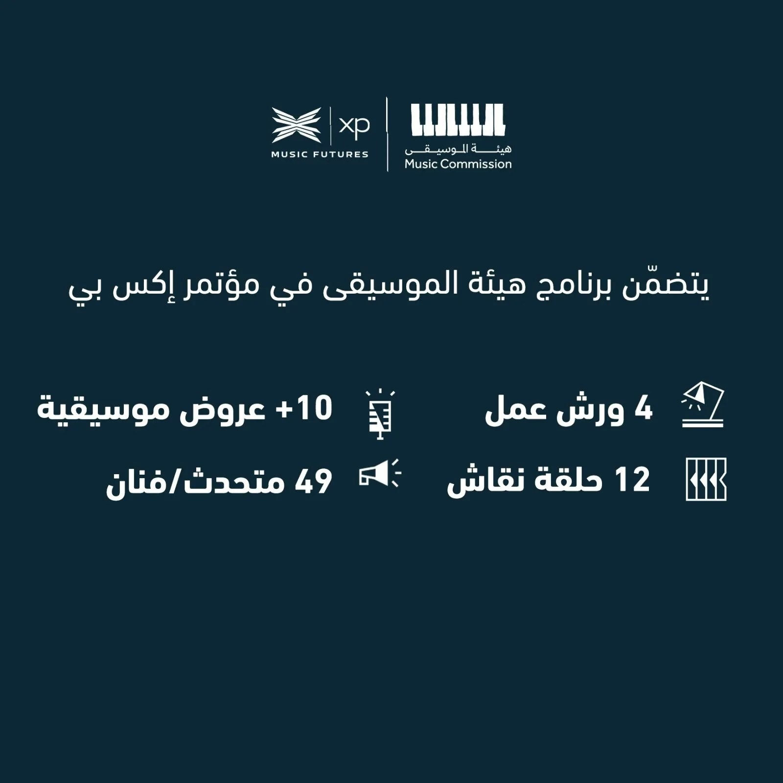 راجعين بمؤتمر إكس بي لمستقبل الموسيقى من 7-9 ديسمبر 2023! نقدم من خلاله ورش عمل تفاعلية وحوارات عن المشهد الموسيقي في المنطقة. وجِد مؤتمر إكس بي لتعزيز صناعة الموسيقى في منطقة الشرق الأوسط. نناقش خلال برامج المؤتمر اللبنات الأساسية لصناعة الموسيقى من خلال ورش العمل والحوارات وفرص التواصل والعديد من أنشطة الحياة الليلية. نسعى في مؤتمر إكس بي على توسيع النطاق لمحترفي صناعة الموسيقى من جميع الخلفيات، وتمكين الفنانين والمصممين ورواد الأعمال وصانعي السياسات على الخلق البناء في المشهد.