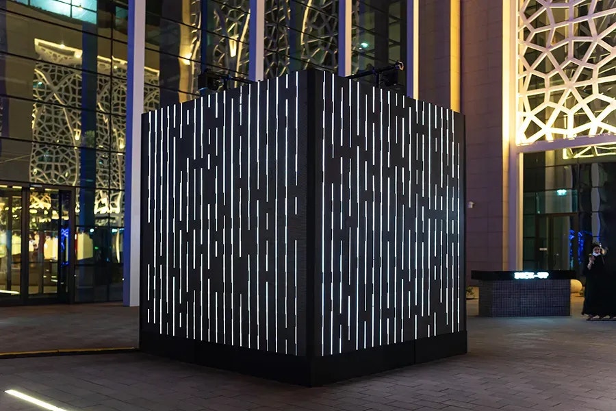 Presented in collaboration between Last Floor Productions & Studio Iregular. This cube detects people's motion & activity – creating audio & visual responses of their movements.