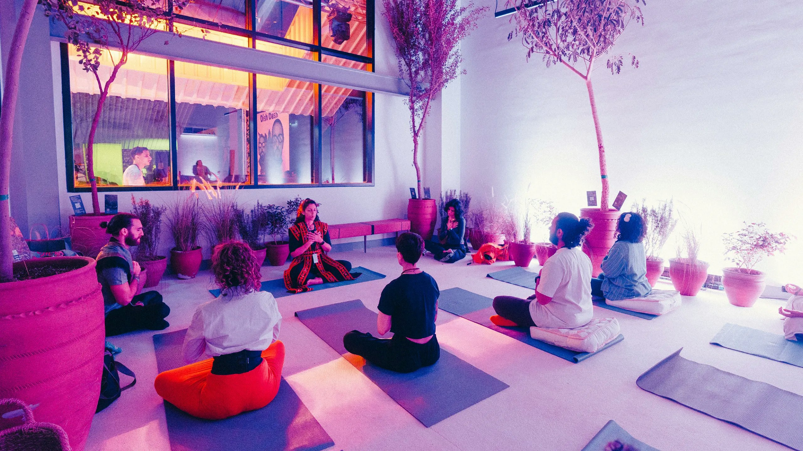 "The Healing Oasis" is a sensory experience that combines the healing power of nature, music, and art to offer a space of respite for attendees. The space is designed as an immersive forest with lush trees and rich plants creating a calming atmoshpere. It also features an interactive art installation that uses light, sound, and projection to create a multisensory experience. The installation responds to the natural surroundings and the music being played at the conference.